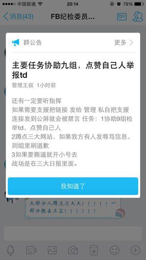 邀请很快得到响应。帝吧吧务中负责后勤和微博管理的“@赵日天233号”在新浪微博上创建了“帝吧fb出征”的话题。很快,来自五湖四海的爱国青年迅速集结在了一个叫做“帝吧FB出征总群”的QQ群里。
